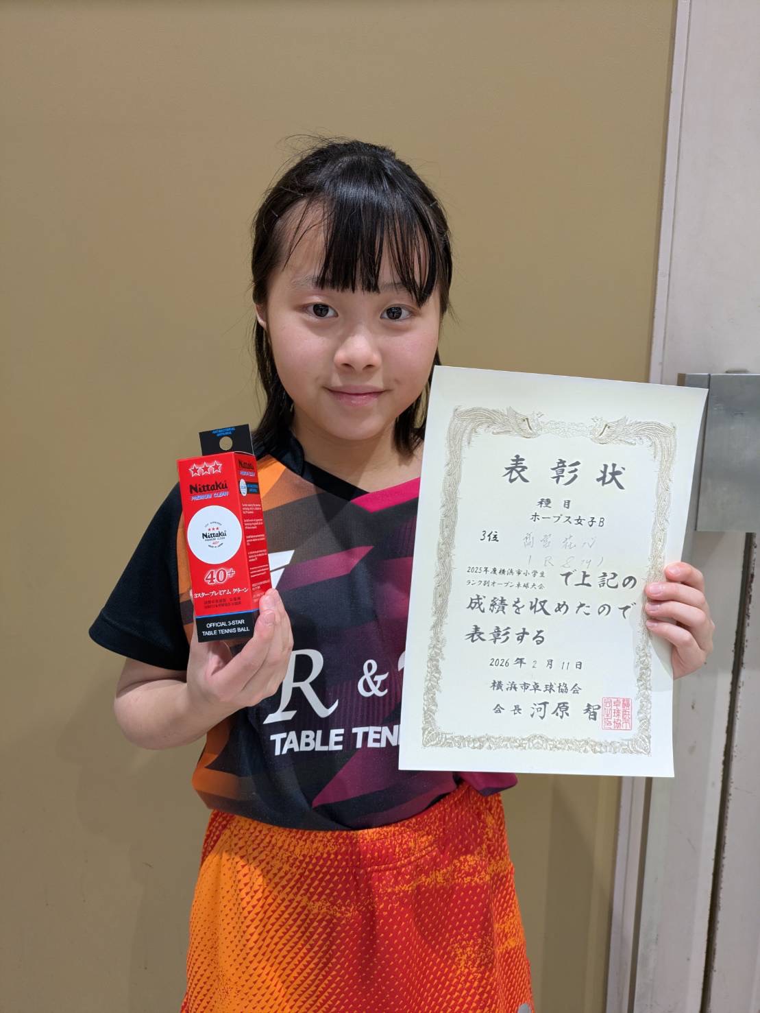 【2位】横浜市小学生ランク別オープン卓球大会